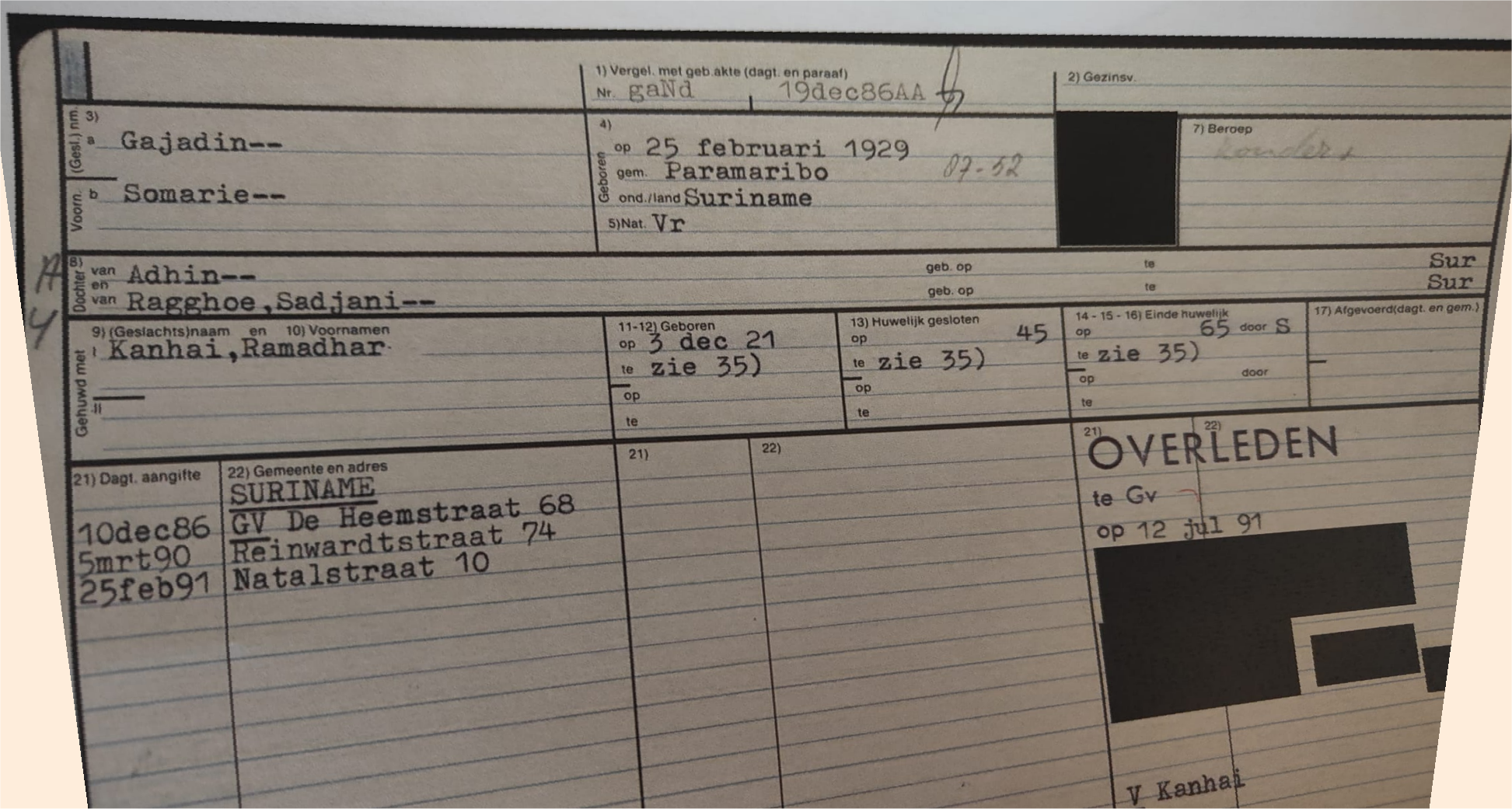 Somarie Gajadin, huwelijksakte van haar ouders.