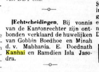 Krantenknipsel waarin de scheiding met Isla Jasodra werd gepubliceerd (08-07-1950)