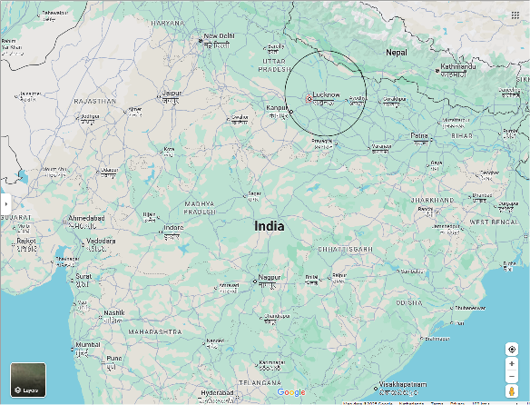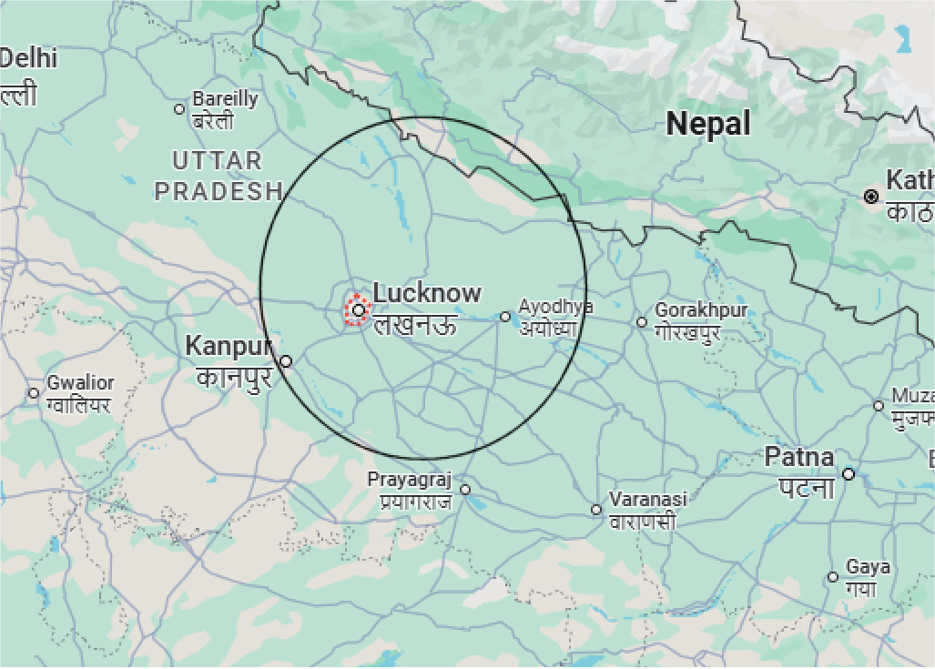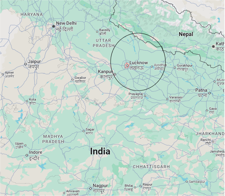 Lucknow ligt in het noorden van India tegen Nepal aan in Uttar Pradesh. © google maps.