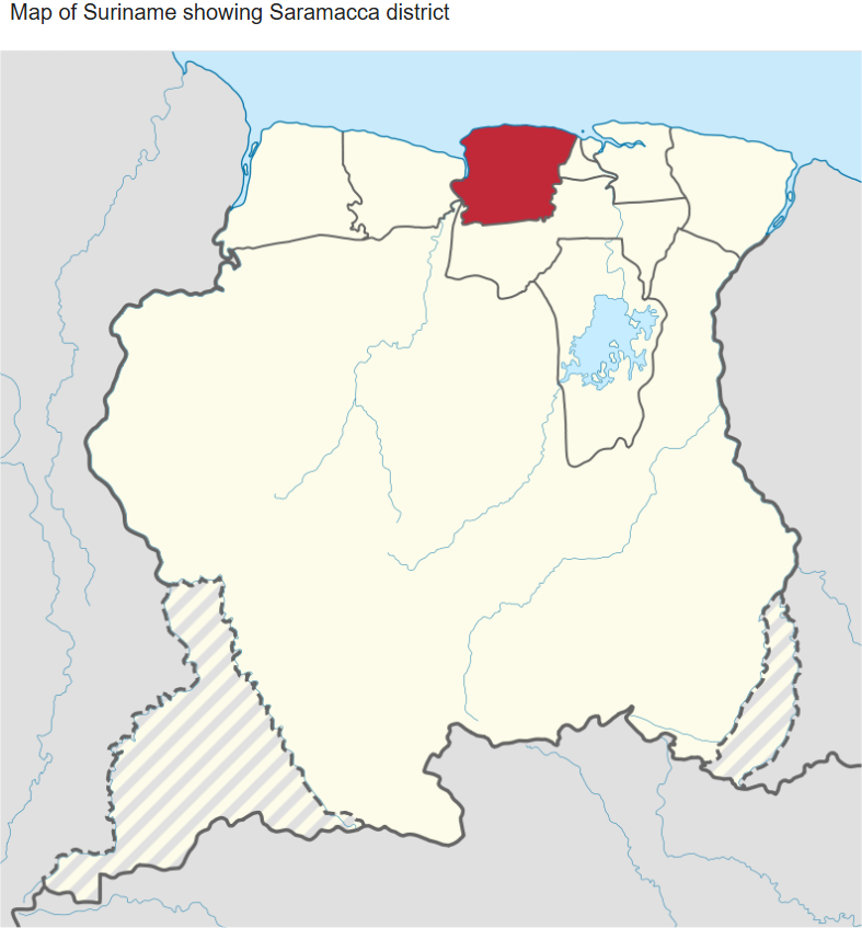 In Saramacca kreeg hij een stukje bos op plantage 'La Prevoyance', perceel 438, huisnummer 15.