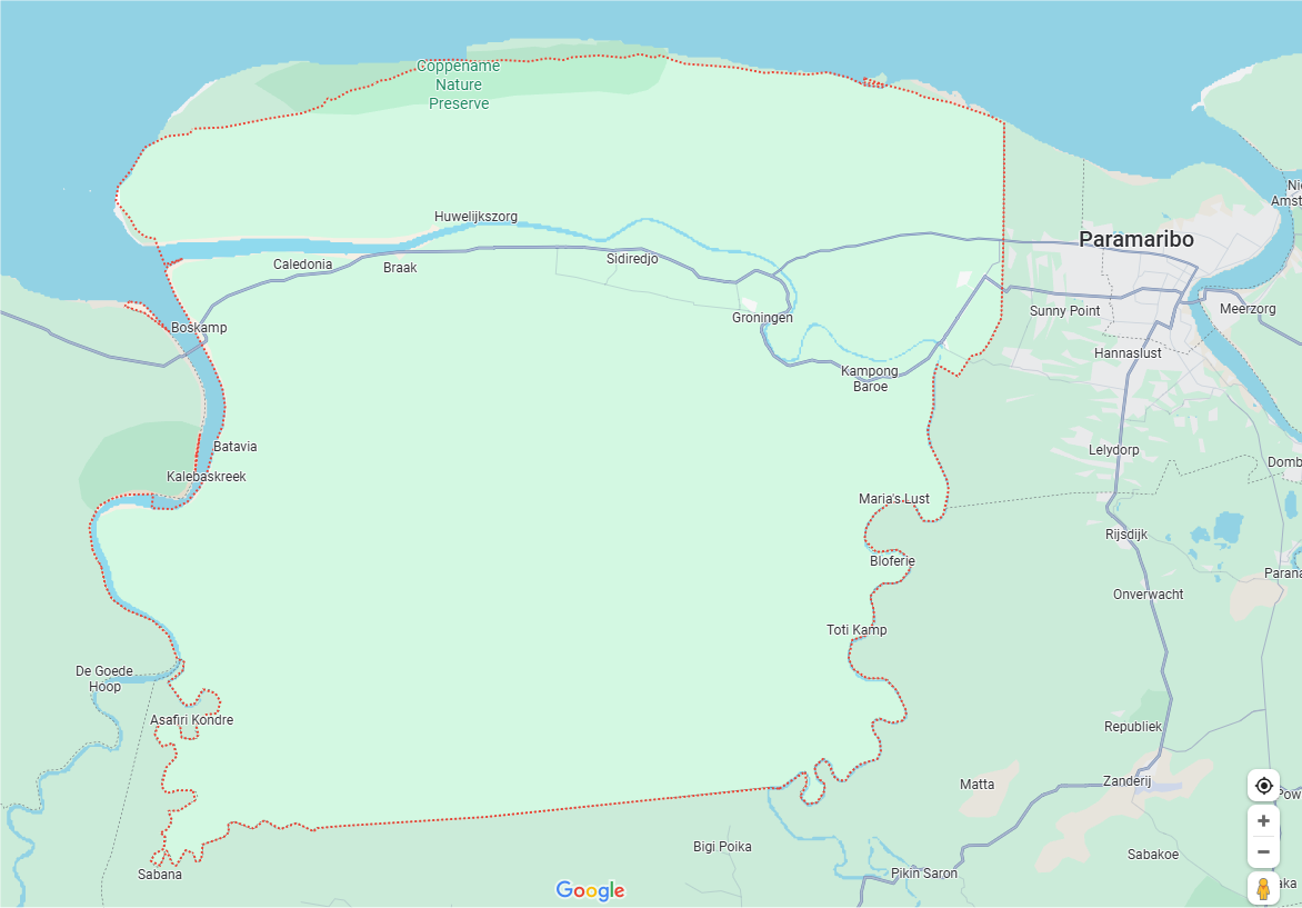 het district Saramacca, en aan de 30 kilometer lange Gangaram Pandayweg, voorheen Larecoweg, die begint in de buurt van Groningen